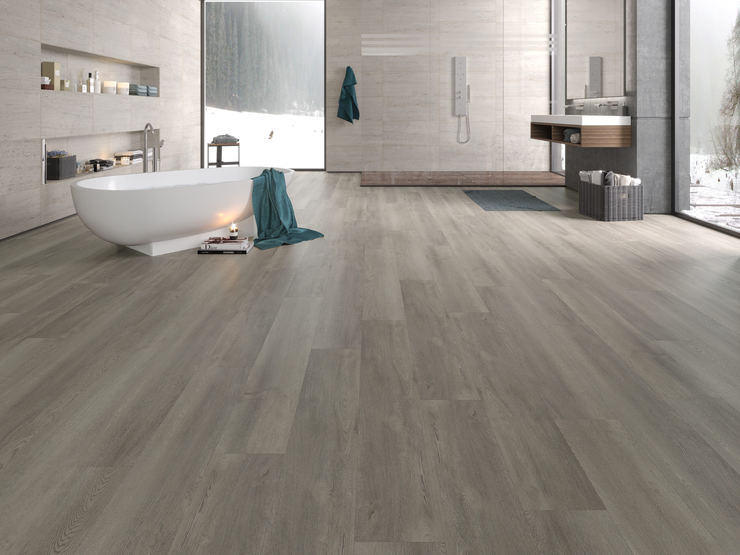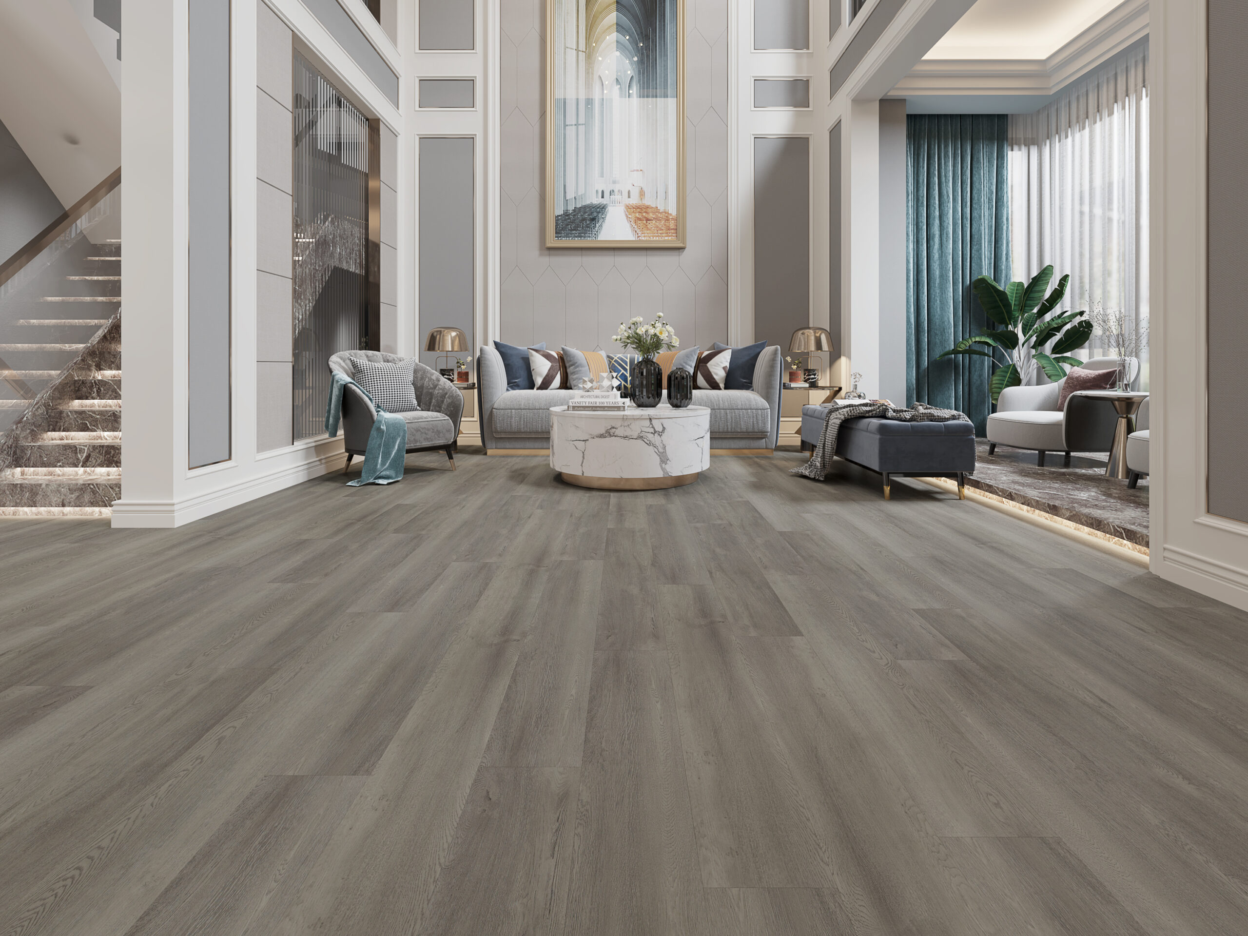 Our 6.5mm flooring is expertly crafted from Stone Plastic Composite (SPC) to deliver exceptional performance. It’s not just flooring; it’s a design that surpasses expectations. The primary constituents of this composite are natural limestone powder, polyvinyl chloride, and stabilizers, meticulously combined to create an exceptionally sturdy material. What sets it apart from conventional vinyl flooring is its eco-conscious design, completely devoid of plasticizers, making it a sustainable choice.