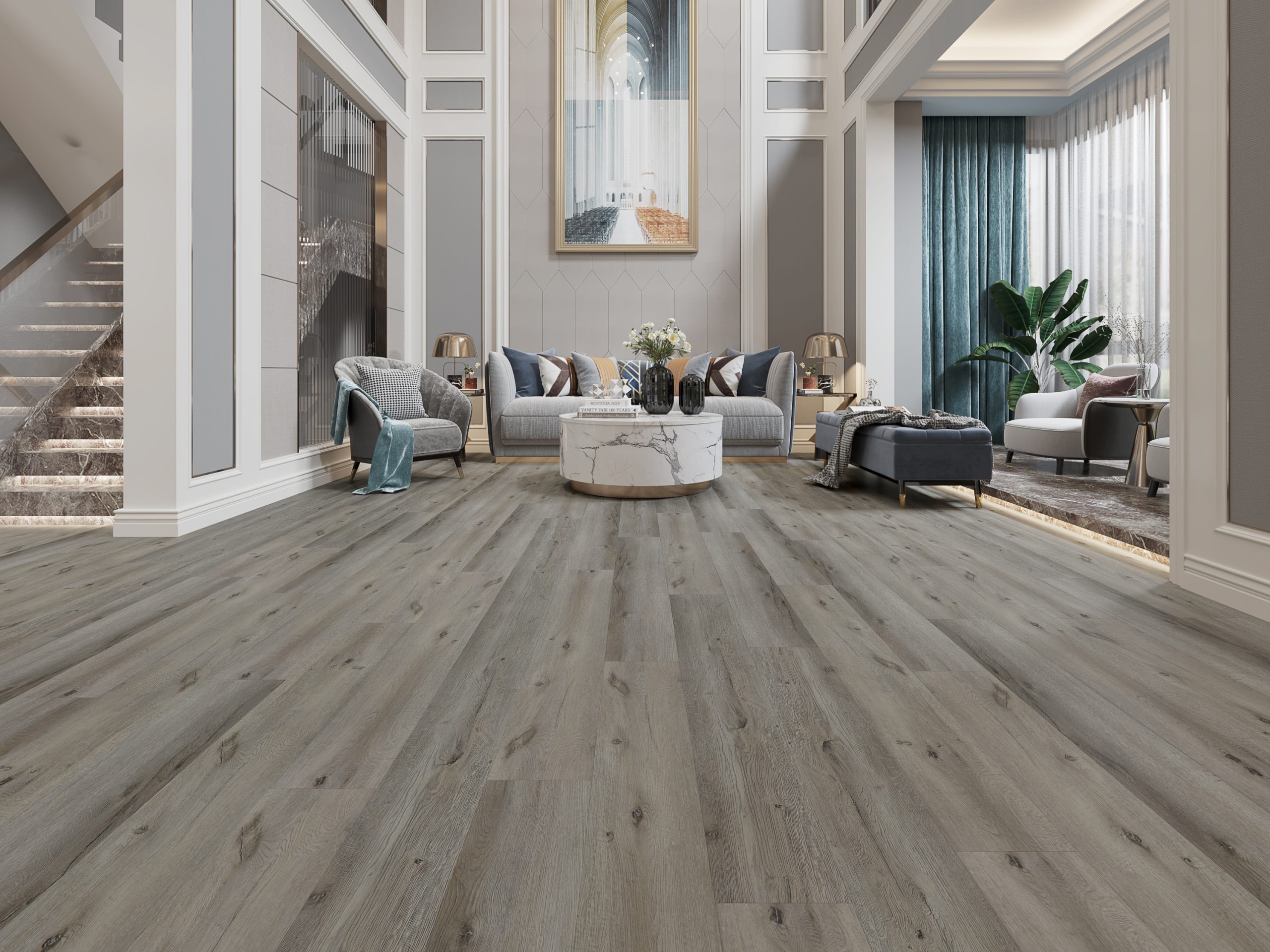 Our 6.5mm flooring is expertly crafted from Stone Plastic Composite (SPC) to deliver exceptional performance. It’s not just flooring; it’s a design that surpasses expectations. The primary constituents of this composite are natural limestone powder, polyvinyl chloride, and stabilizers, meticulously combined to create an exceptionally sturdy material. What sets it apart from conventional vinyl flooring is its eco-conscious design, completely devoid of plasticizers, making it a sustainable choice.