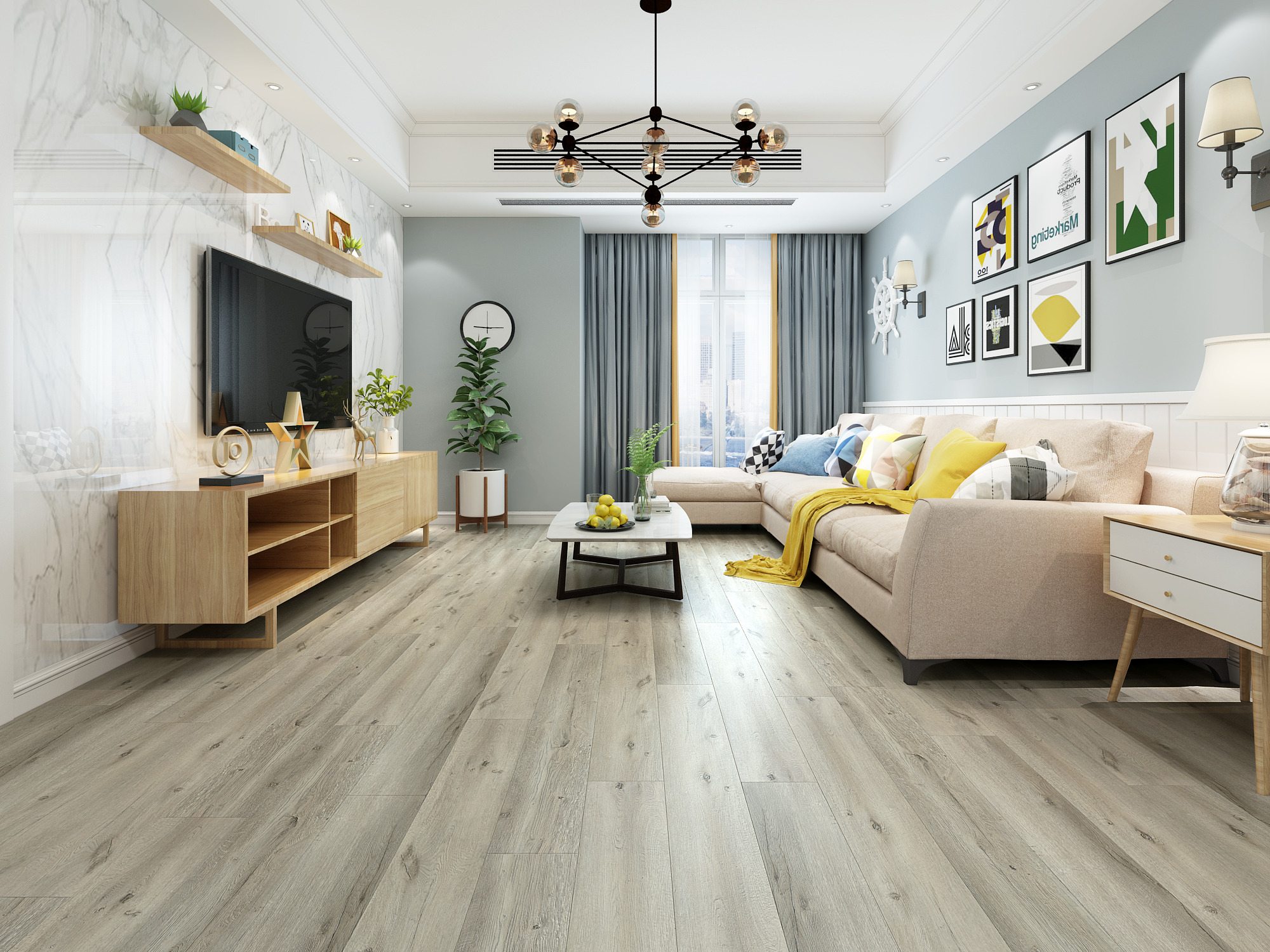 The structural integrity of our 6.5mm flooring is reinforced with a multi-layer composition, featuring UV Coating, a robust 22mil ceramic bead abrasion-resistant layer, decorative paper film, and the core Stone Plastic Composite board. Additionally, we’ve thoughtfully included a 6.5mm underlayment for discerning high-end applications.